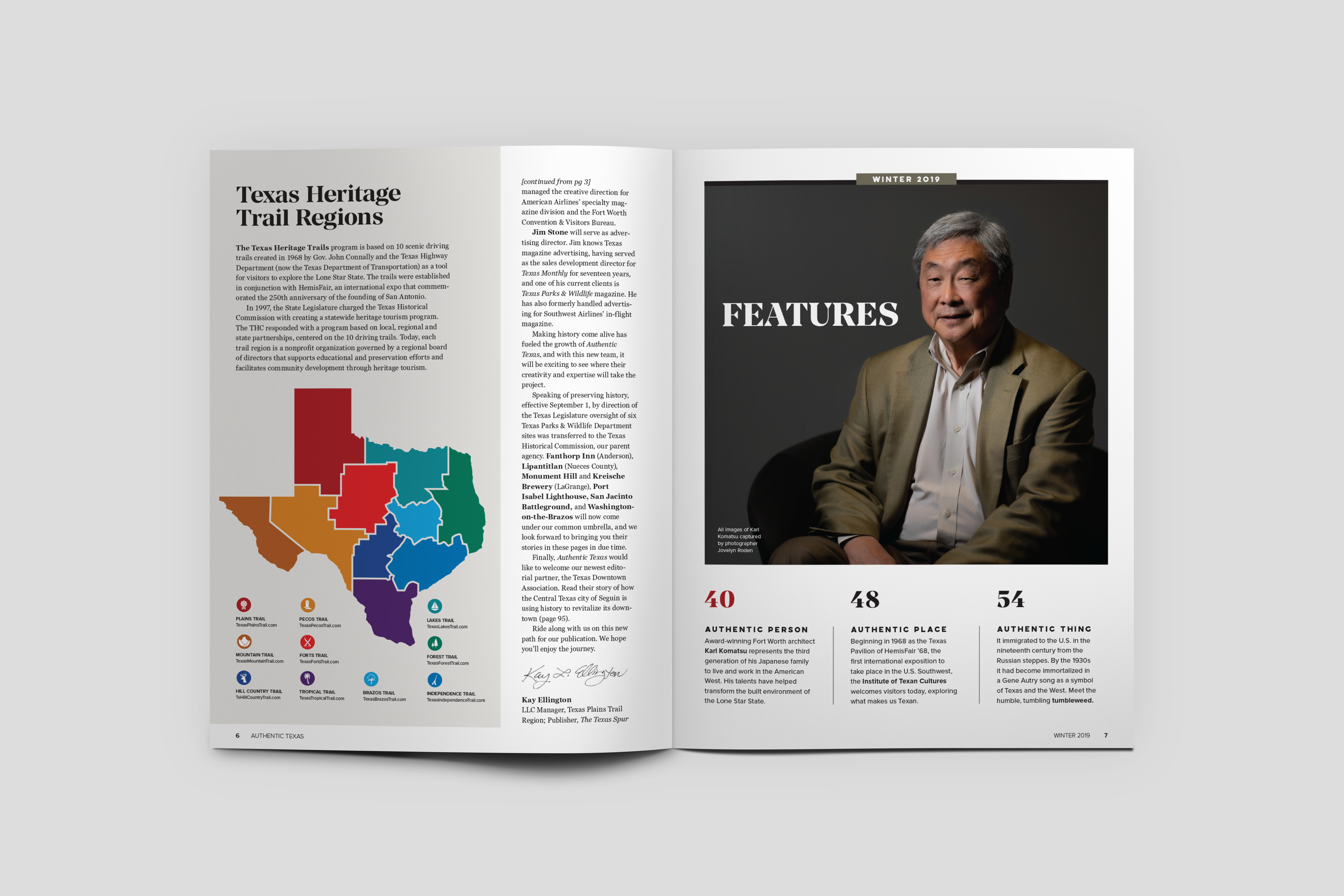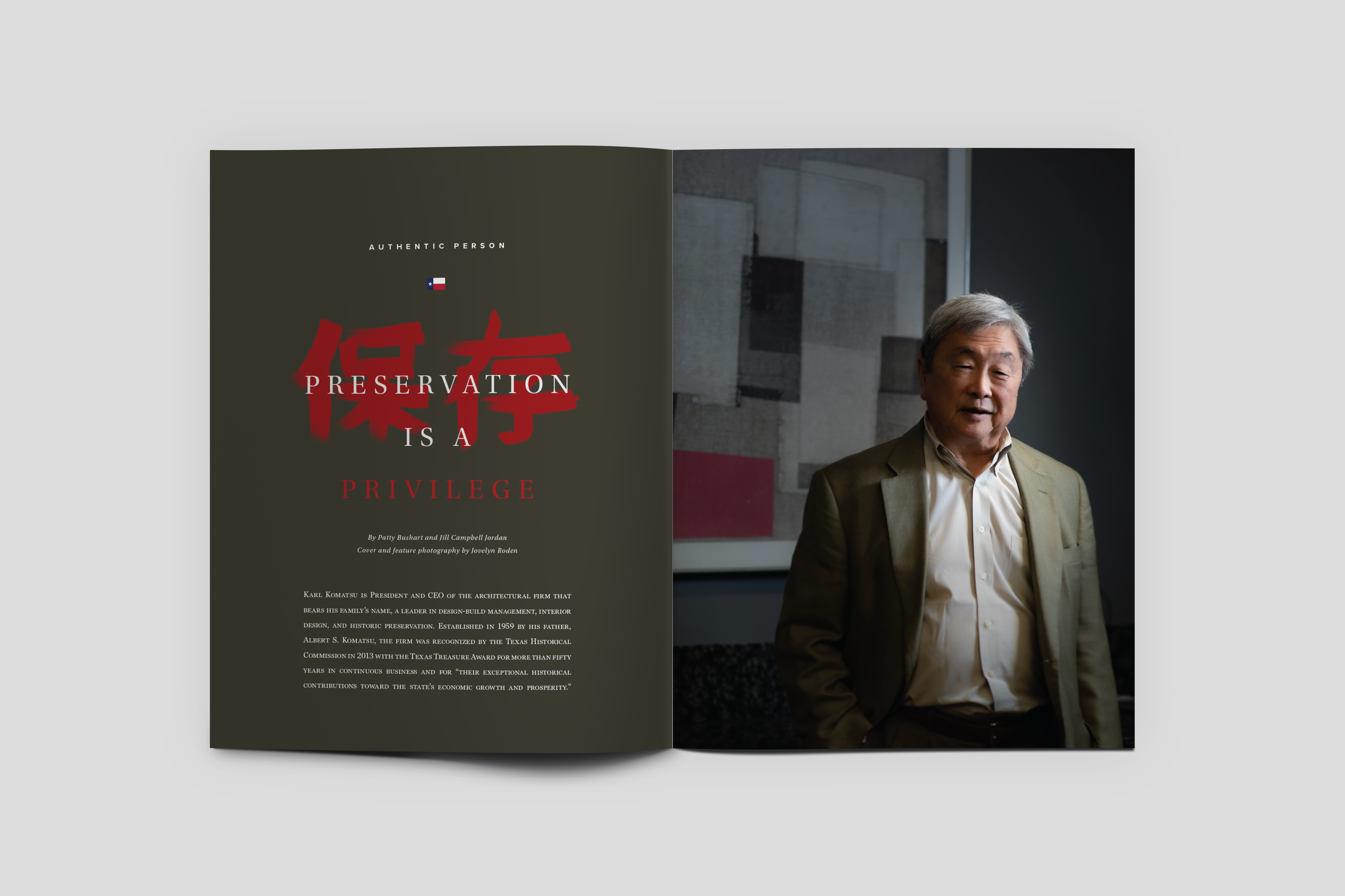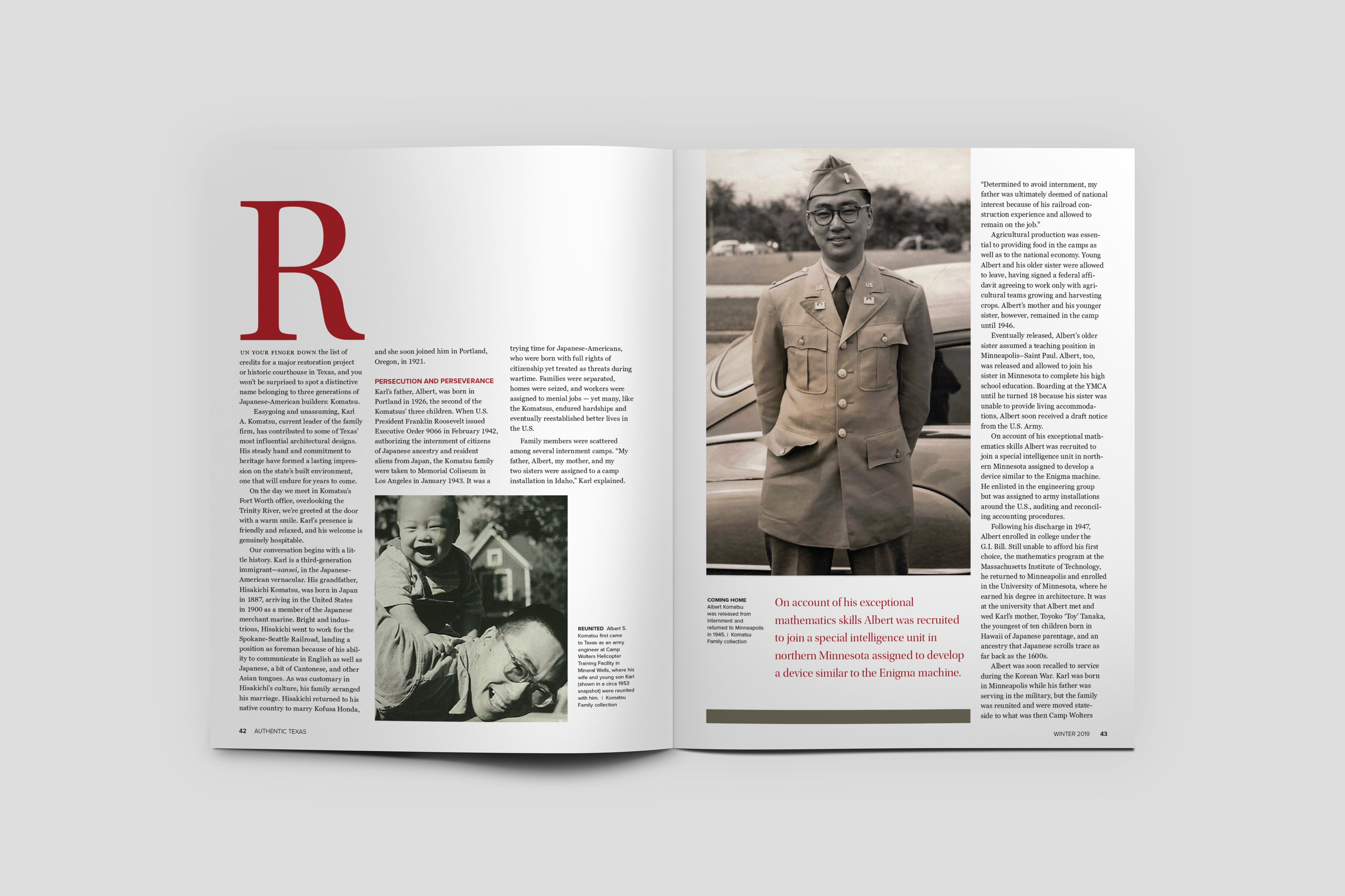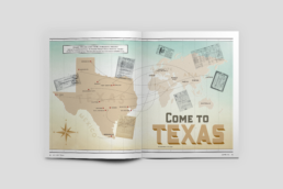 Cover and Editorial Feature design and layout for Authentic Texas Magazine’s Winter 2020 Issue that featured the stories and history of immigrants who first came to Texas and those who live in the state today, their contributions and businesses.