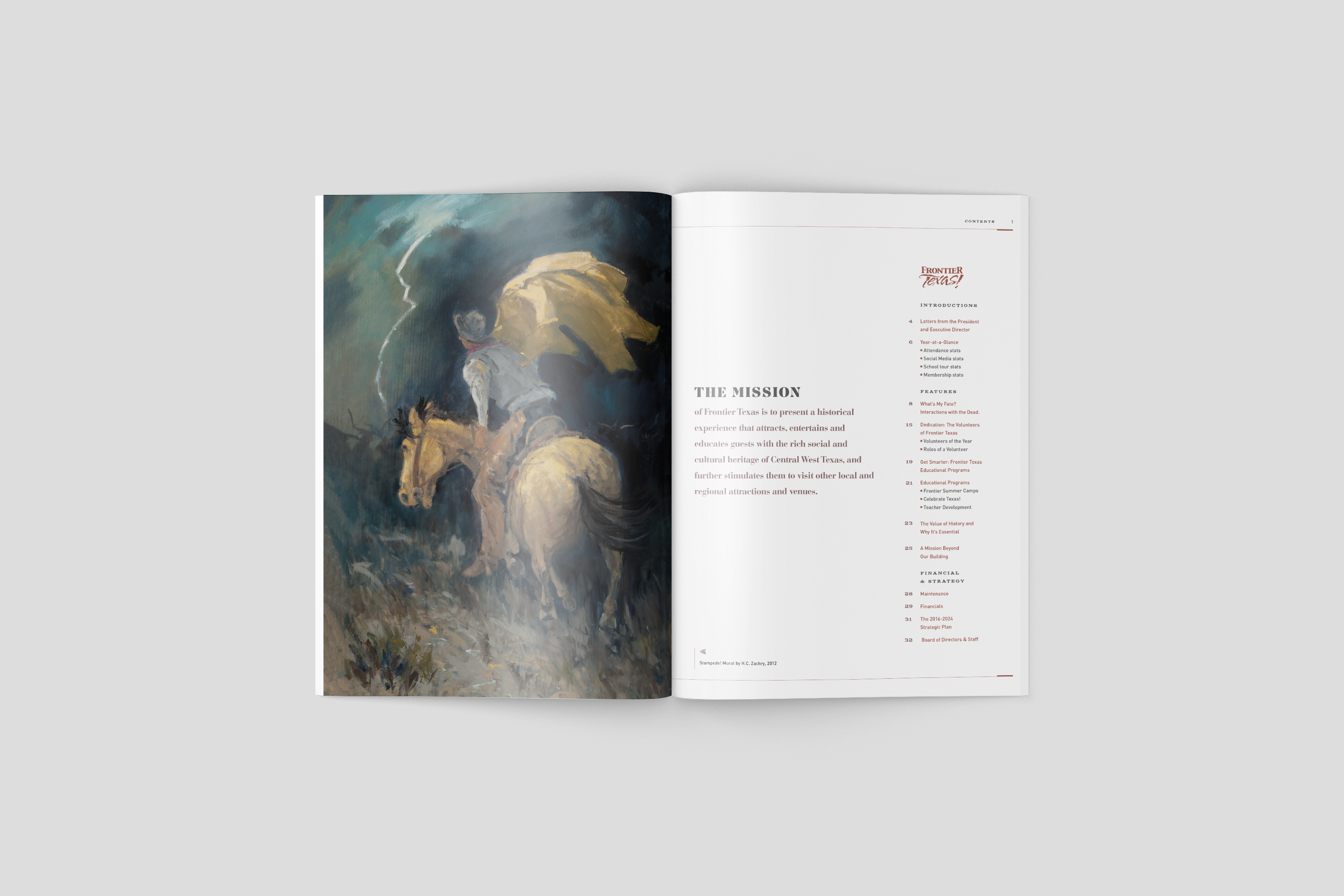 This Frontier Texas Museum 34-page report focused on the value of funding and promoting Texas heritage and history with a feature about a new exhibit, “What’s My Fate?” where visitors follow certain historical figures from the frontier days with a reveal card to find out their fate at the end of the exhibit.